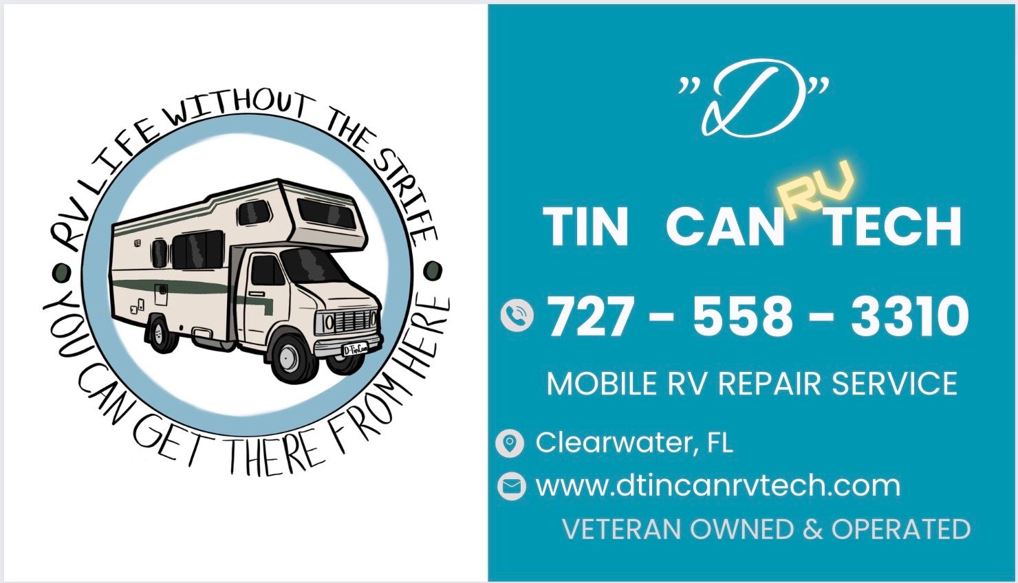 Getting an RV from a campground to a repair shop can be a difficult task, whether because of the months out scheduling or the months at the shop once there. That’s why D Tin Can RV Tech is an exclusively mobile RV repair service. Wherever your rig is Clearwater, or surrounding areas simply give us a call and we will be there to address the problem and get you back on track.